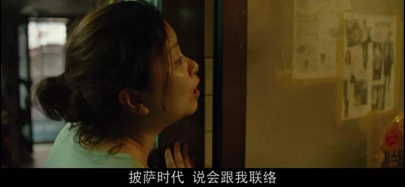 我们看下面这个镜头,一看就知道男孩是在寻找WiFi,连网络都用不起,再次通过细节准确说明这一家人的底层社会地位。下一个长镜头,因为找不到WiFi他开始起身往上走。从这个镜头我们会学到一个手法——人物的出场方式。