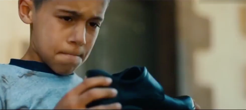 这种神圣感在小孩的表演中我们也能看出来——他用双手毕恭毕敬地端起了这只鞋子,演员的表演很好地诠释了这只鞋子在他心目中的地位,这里展现的就是演员表演细节的作用。
