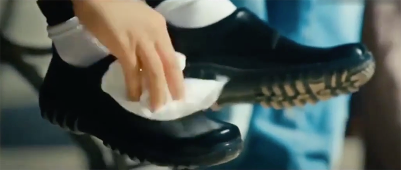 片子的第二个镜头也就是进入主题后的第一个镜头。为什么这么展现呢?因为这是一个主题和鞋有关的故事。所以第一个正式镜头,作者就拍摄了一堆各式各样的鞋子,而不是用人物的衣着来点题。