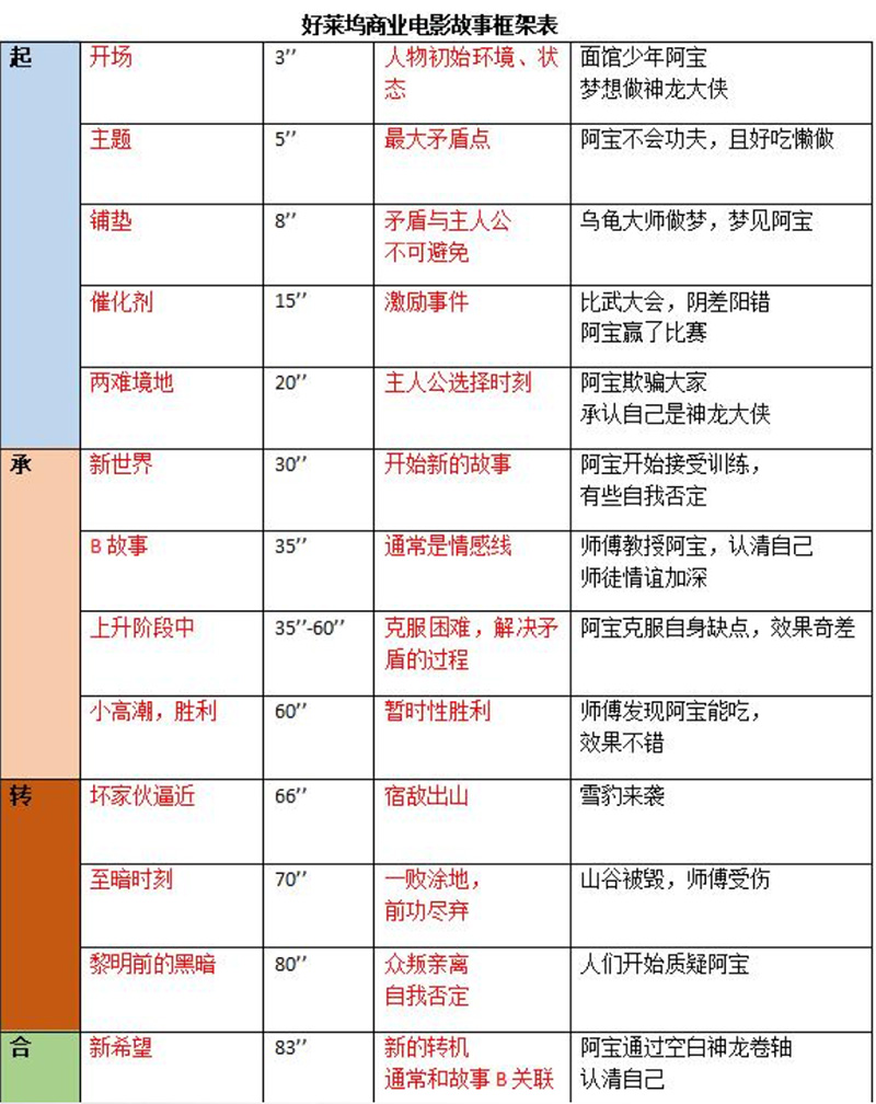 大家可以看下以下的视频框架,包括起承转合四个部分,大部分的商业电影都可以往这个步骤里面放,电影的几分钟该做什么,早就规划好了。通过这个案例,我想告诉大家的是,任何艺术创作,都有方法论 ! 创意只是锦上添花,方法才是基石,因此我们要先具备方法,再谋求创意。